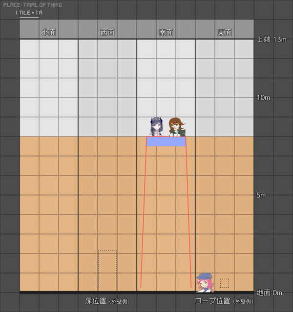 下部8mぶんについてはオレンジ色に塗られているので緑魔法の対象にできる 上部5mは不可
