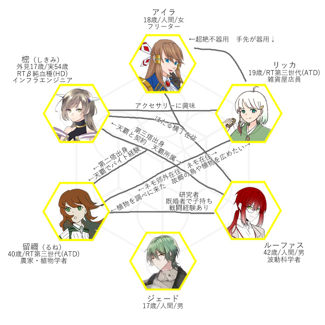 | PL/PC | アイラ: PC発言・PL発言・雑談など / 店長 リッカ: PC発言・PL発言・雑談など ルーファス: PC発言・PL発言・雑談など ターフェ: PC発言・PL発言・雑談など / ジェード 留禰: PC発言・PL発言・雑談など |